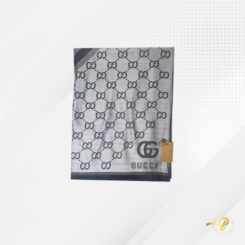 Greyish Cashmere Scarf is a blend of cashmere and silk. The scarf fabric is soft, warm, and stays on the head with or without underscarf. It has off-white-colored patterns and can be worn in any season.