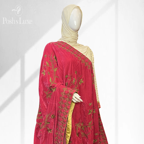 PoshnLuxe has an exclusive variety of velvet shawls online. This fuchsia pink velvet shawl is a must-have for winter festivities. PoshnLuxe’s embroidered velvet shawls in Pakistan add to the sophistication and uniqueness of an outfit, a timeless accessory to match your persona!